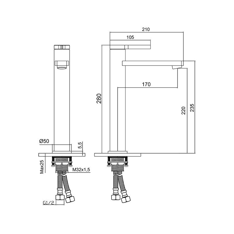 – Çıkış ucu yüksekliği 220 mm’dir.